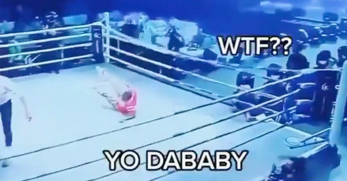 DaBaby got a little too excited and became a viral moment when he attempted to crash a boxing match and fell into the ring.